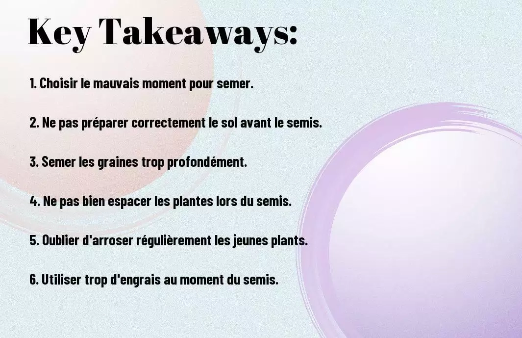 Il est crucial d'éviter certaines erreurs fréquentes lors du processus de semis. Tout d'abord, assurez-vous de ne pas semer trop dense, ce qui peut entraîner une croissance étouffée et des maladies liées à l'humidité stagnante. De plus, ne pas oublier d'arroser régulièrement et uniformément les graines est essentiel pour assurer une germination adéquate.